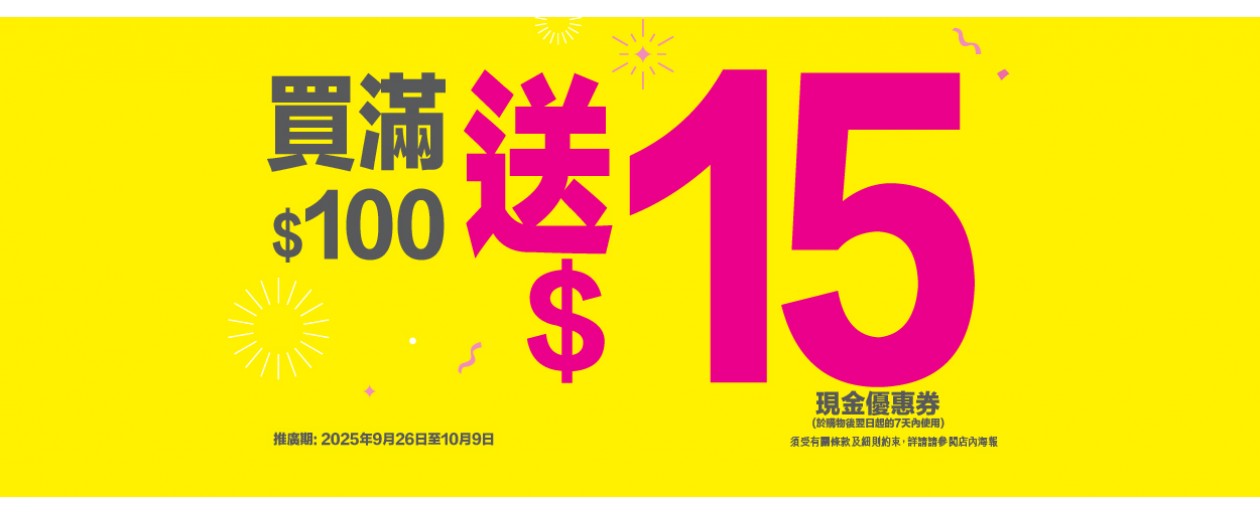 而家買滿$100即送💵$15現金優惠券! 買得愈多,送得愈多!🛍️ 優惠期有限,立即行動喇!